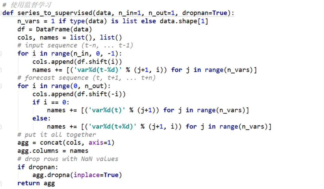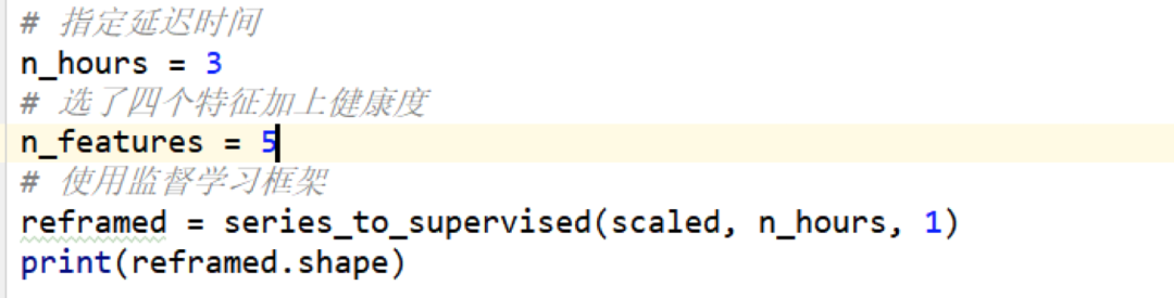 首先,在调用series_to_supervised()时必须适当地解决问题。我们将使用3个小时的数据作为输入。还要注意,我们不再将所有其他字段的列都明确地放在ob(t)处,我们在指定输入和输出列时需要更加小心。