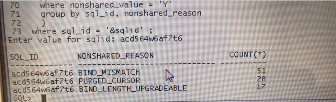 通过上图查询反馈可知大量子游标没被共享,是由三个导致: