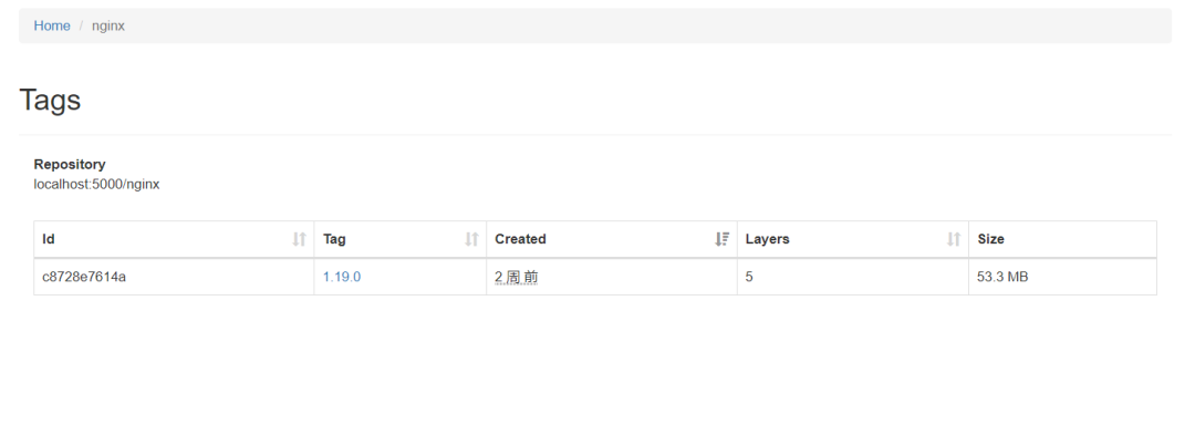 上图为部署测试使用nginx镜像上传到registry私有仓库中,其展示方式使用URL在浏览器中打开,也可在Linux服务器上使用curl命令直接访问URL。其不同的展示样式需要更改URL,并且没有直接管理Docker镜像的工具,同样需要curl命令修改URL的参数来完成,操作不方便。