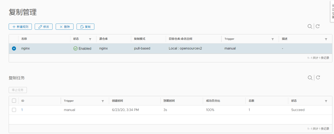 值得一提的是Harbor的仓库管理模块和复制管理模块。仓库管理中可以添加其他仓库源中的镜像,利用复制管理模块可以将其已添加到仓库管理中的镜像复制到Harbor仓库中。