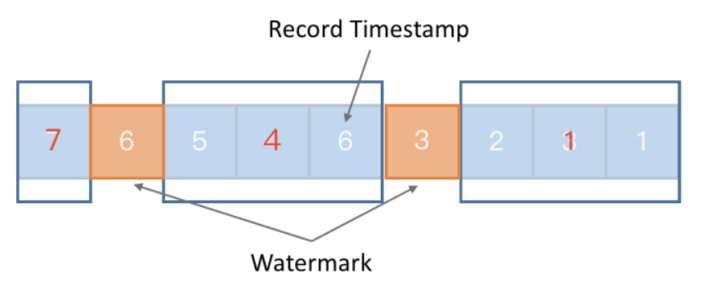 这个时候我们在整个时间序列里插入一些类似于标志位的一些特殊的处理数据,这些特殊的处理数据叫做watermark。一个watermark 本质上就代表了这个watermark 所包含的timestamp数值,表示以后到来的数据已经再也没有小于或等于这个时间的了。