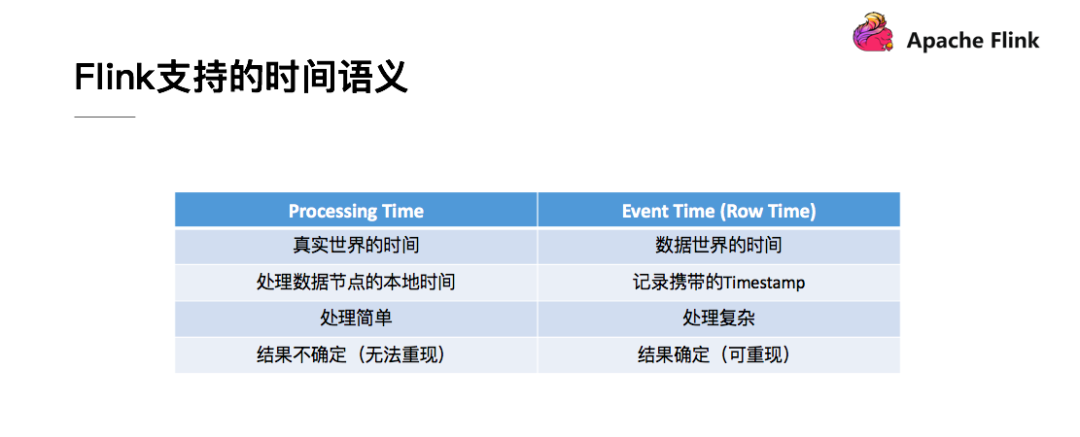 Processing Time: 机器或者系统的时间,可理解为真实世界的时间。使用该时间模式有最好的性能和最低的延迟。