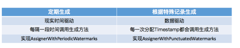Watermaker的生成有两类。第一类是定期生成器,默认50ms向下游发送一次;第二类是根据一些在流处理数据流中遇到的一些特殊记录生成的,来一条数据获取一次,发送一次。生产中的使用可根据业务考虑使用何种,已达到性能和业务的平衡。