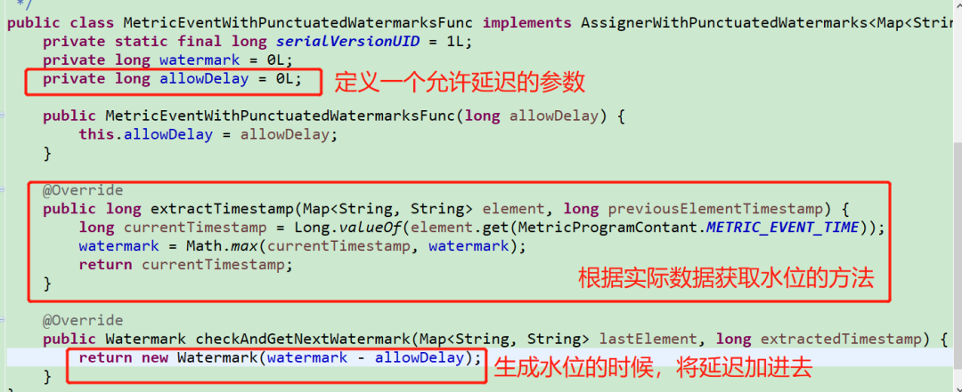 关于数据的延迟乱序,生成Watermaker时是可以直接增加一个特定延迟时间的。这样做的好处是,在水位到达时,仍然可以再等待一个延迟保证晚到的数据进行统计,保证数据的准确性,当然这样也使得数据实时性延迟,是保证实时性还是准确性,需要生成进行取舍,或者两种之间采用一个平衡值。具体的延迟时长,需要观察实际数据的延迟等进行判断及定义。