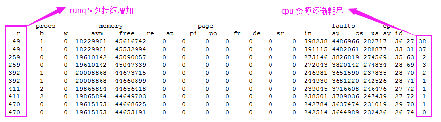 同时发现,随着问题sql执行次数的增加,librarycache: mutex X等待次数也跟着同比增加,进而使得主机Runq队列剧增,Cpu资源耗尽。