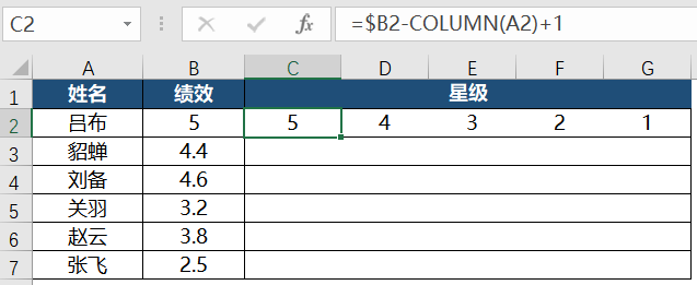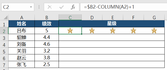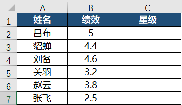 我们期望在C列里能够比较直观的看到每个人的绩效评分。