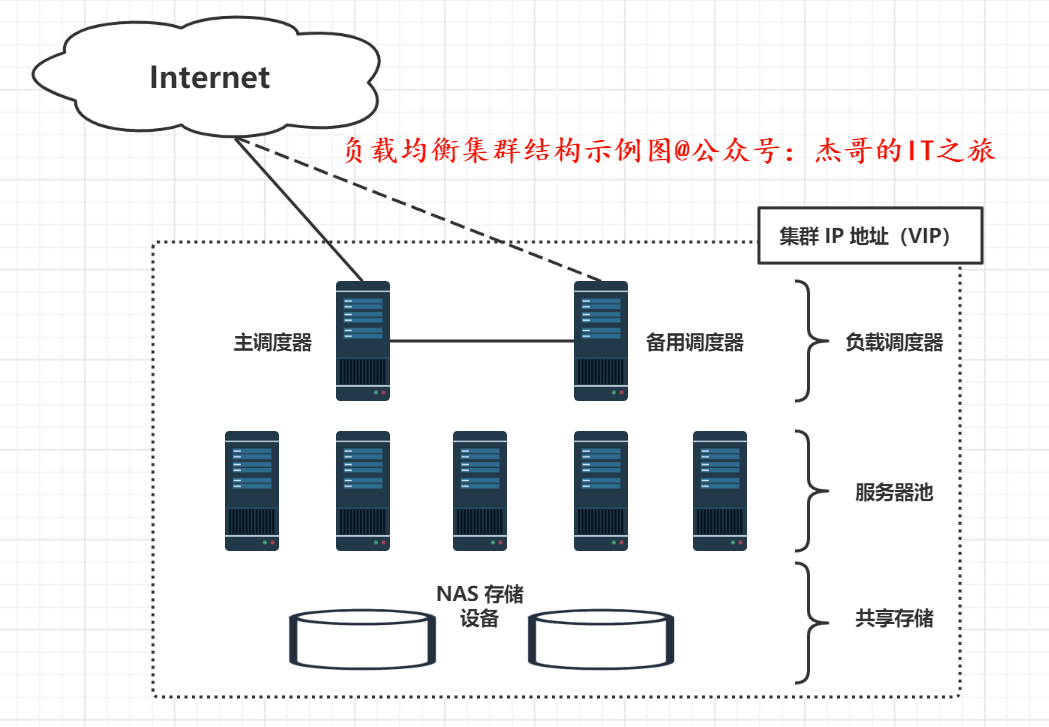 LVS 是一个实现负载均衡集群的开源软件项目,LVS 架构从逻辑上可分为调度层、Server 集群层和共享存储层。