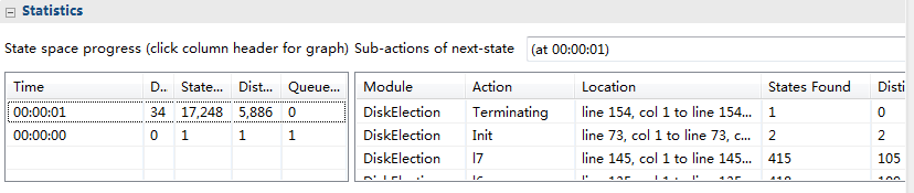 Figure 1 PlusCal描述的算法和运行的状态统计