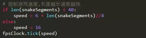 为了增加难度,我们设置蛇身越长速度越快,直到达到一个上限。