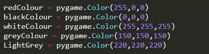由于我们需要用到一些颜色,而Python是不自带的。所以我们需要定义几个颜色。