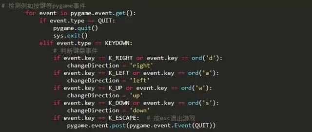 我们需要通过键盘输入的上下左右键或WASD来控制蛇类运动,同时加入按下Esc就退出游戏的功能。