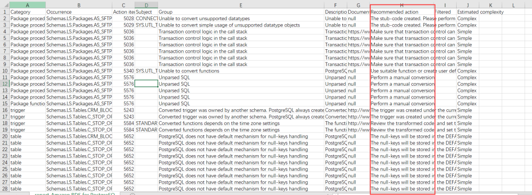 点击save,会生成一个excel列表,该列表展示了一些无法自动迁移的信息,例如包、触发器,此类需要手工修改。