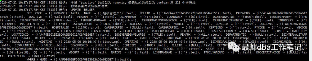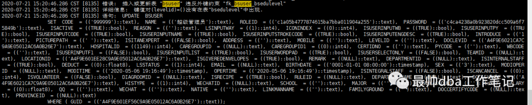 查看数据库日志发现报错sql如下