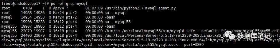 kill -9 23079 24406 su - mysql55 /bin/sh /usr/local/mysql55/bin/mysqld_safe --defaults-file=/home/mysql55/my55.cnf &