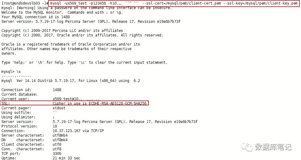 注:如果用户是采用本地localhost或者sock连接数据库,那么不会使用SSL方式!!!