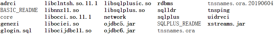 Oracle Client路径是/opt/app/oracle/instantclient_11_2,包含如下内容,
