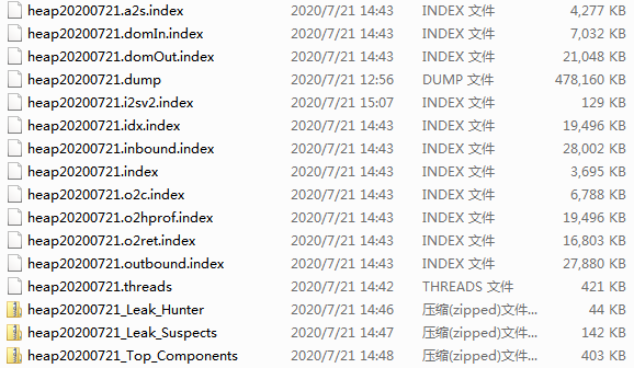 从生成的文件看其实是创建了一系列索引文件,在MAT中点击不同的选项时,应该就是从这些索引文件链接过来的,