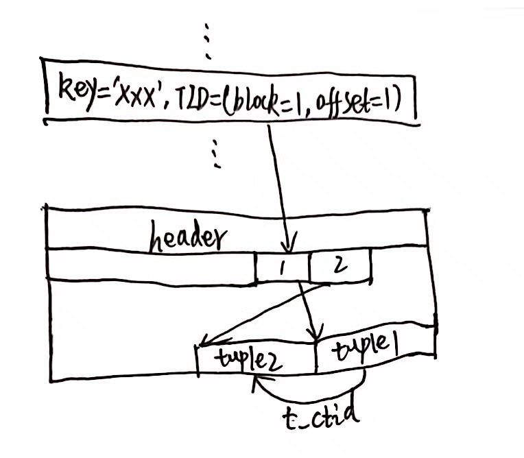 t_max:删除或更新此元组的事务txid,如果为删除或更新则为0。t_cid:command id,在当前事务中,已经执行过多少条sql,例如执行第一条sql时cid=0,第二条cid=2。t_ctid:保存着执行自身或者新元组的元组标识符(tid),在更新元组后tid指向新版本的元组,否则指向自己,这个我们后面会细细讨论。介绍完上面的基本概念后我们再来看看postgresql如何通过b树索引找到对应的数据行的。