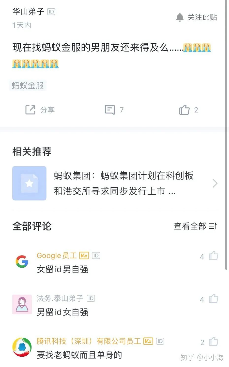 还有网友分析到:根据目前的信息看,阿里系持股超八成。蚂蚁金服员工持有的股票大约是四成。