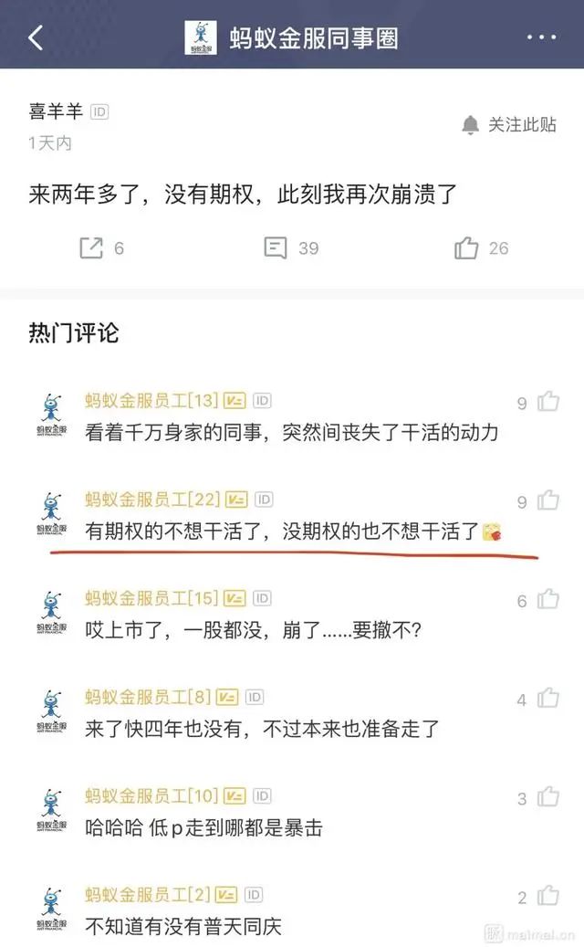 据 7 月公布的阿里巴巴 2020 财年报告,阿里集团目前在岗员工才 10 万出头。基本上就是蚂蚁金服有多少核心员工,就会出现多少千万/亿万富翁。