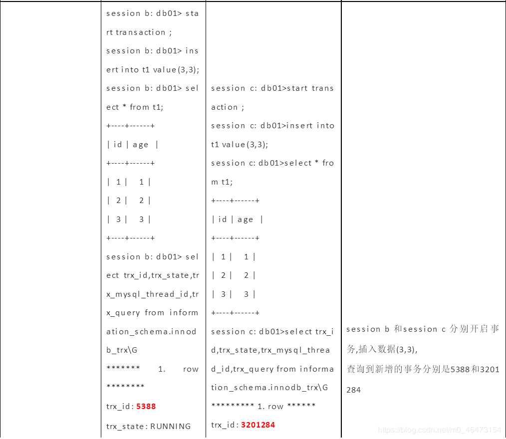 innodb_rollback_on_timeout=on时,在5.6的版本下,由上文加粗加红的字体可以看到事务的ID的发祥变化,说明开启了一个新的事务.由此明白事务会整体回滚,然后新开一个事务接收下一次查询.但是在5.7版本下,回滚之后就不会再新开启一个事务了。