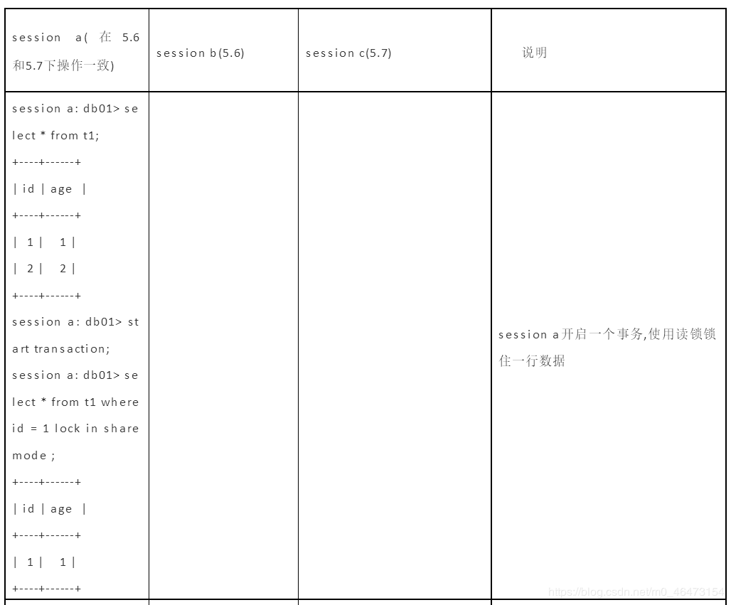 innodb_rollback_on_timeout=on的情况下,5.6版本和5.7版本的行为会不一样.为了避免麻烦,一并在下表做对比。