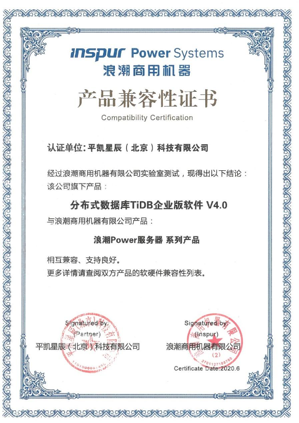 近期,平凯星辰(北京)科技有限公司(简称 PingCAP)研发的分布式数据库 TiDB 与浪潮商用机器(简称 IPS) K1 Power 服务器系列产品完成兼容性互认证。在此次兼容性测试和认证过程中,PingCAP TiDB 分布式数据库和 IPS K1 Power 服务器在兼容性、稳定性、安全性等方面表现良好,帮助双方在技术生态拓展上迈出了坚实一步。未来,双方也将共同致力于为用户提供安全、稳定、高效的服务器和数据基础平台,为推进国产生态建设添砖加瓦。