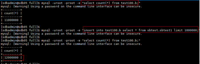 [root@sdb05 ~]# cat etc/exports/sdbdata/backup *(insecure,rw,sync,no_wdelay,insecure_locks,no_root_squash)[root@sdb03 ~]# mount -t nfs -o rw,bg,hard,nointr,tcp 192.168.1.5:/sdbdata/backup sdbdata/backup[root@sdb03 ~]# chown -R sdbadmin:sdbadmin_group sdbdata/backup[root@sdb04 ~]# mount -t nfs -o rw,bg,hard,nointr,tcp 192.168.1.5:/sdbdata/backup sdbdata/backup[root@sdb04 ~]# chown -R sdbadmin:sdbadmin_group sdbdata/backup[root@sdb04 ~]# df -hFilesystem Size Used Avail Use% Mounted on/dev/mapper/centos-root 15G 4.4G 11G 29%/dev/vdb 985G 129G 806G 14% sdbdata/dev/vda1 497M 172M 326M 35% boot/dev/vda3 50G 13G 38G 26% opt192.168.1.5:/sdbdata/backup 985G 129G 807G 14% sdbdata/backup