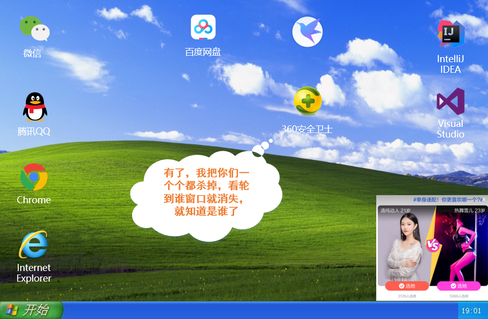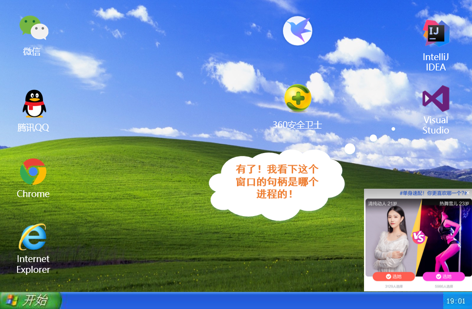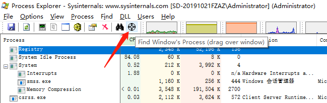按住这个扫描图标拖放到对应的窗口,进程列表将自动定位到对应的进程,接下来就好好收拾这个“坏蛋”吧!