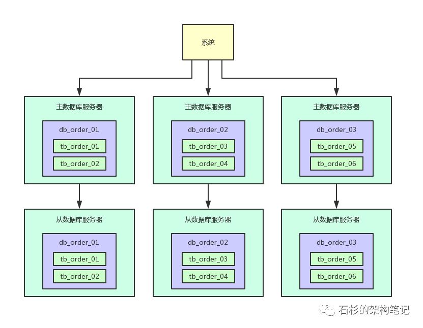 然后多台数据库的拆分方式,可以保证每台数据库服务器承载一部分的读写请求,降低每台服务器的负载。
