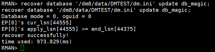 RMAN> recover database '/dm8/data/DMTEST/dm.ini' update db_magic;