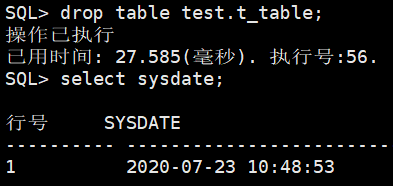 模拟故障,删除test用户下表t_table。并记录下删除表时的系统时间。