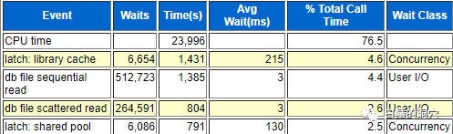 从Load Profile上看,系统的负载确实有所增加,看上去效果不错。不过从TOP EVENT上看,数据库系统已经处于十分危险的状态了。