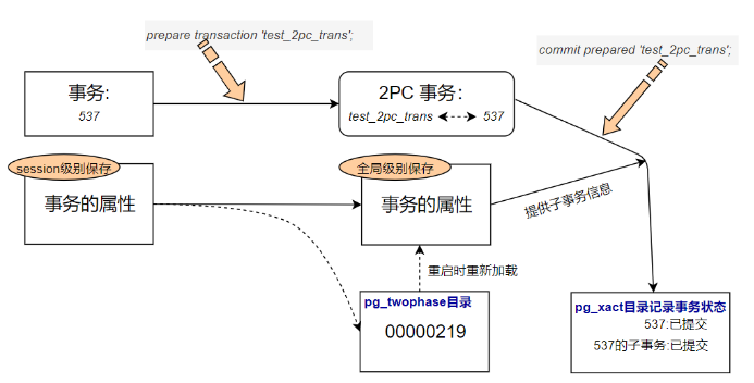 如上00000219文件就是为2PC事务537创建的存储文件,PostgreSQL如果发生重启,在恢复到正常状态之前会从pg_twophase目录加载所有的2PC事务到内存中。
