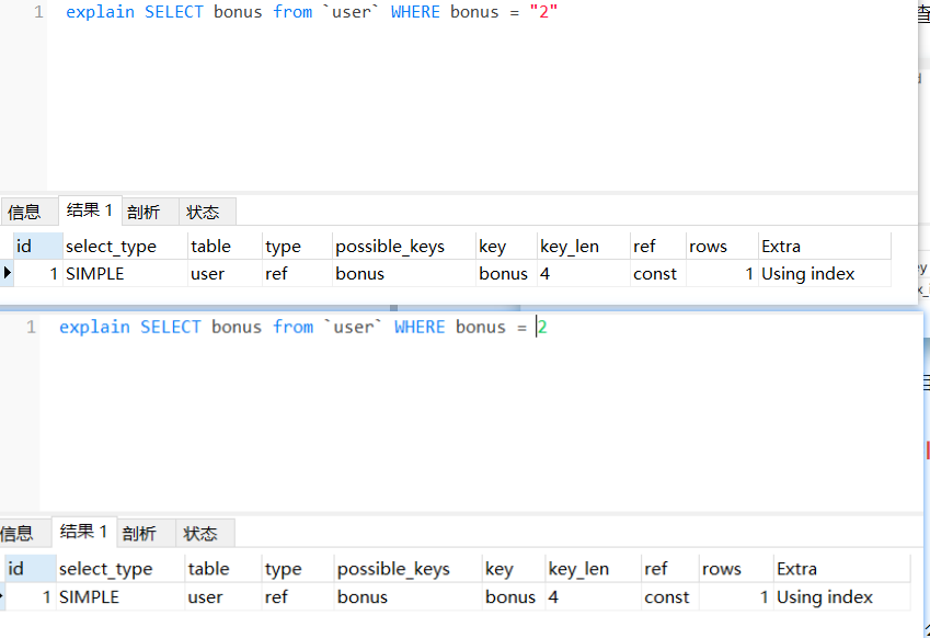 隐式类型转换有无法命中索引的风险,在高并发、大数据量的情况下,命不中索引带来的后果可不止被运维和经理混合双打哦!且写 SQL 且 EXPLAIN!