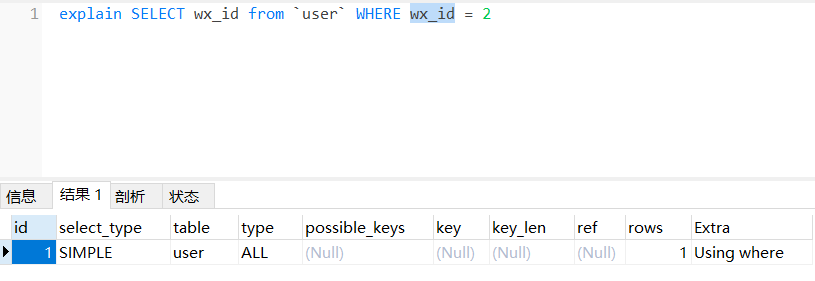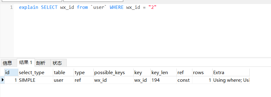 这条 SQL 语句中,wx_id 是具有索引的,但是王经理查出来的结果却是这样的: