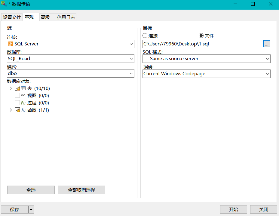 配置完成后,点击开始,就会将你选择的数据库对象以脚本的形式导出到文件中。