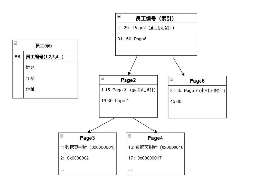 除了底层的页面存储了实际的数据页地址,其他索引页都只是指向下一级的索引页。