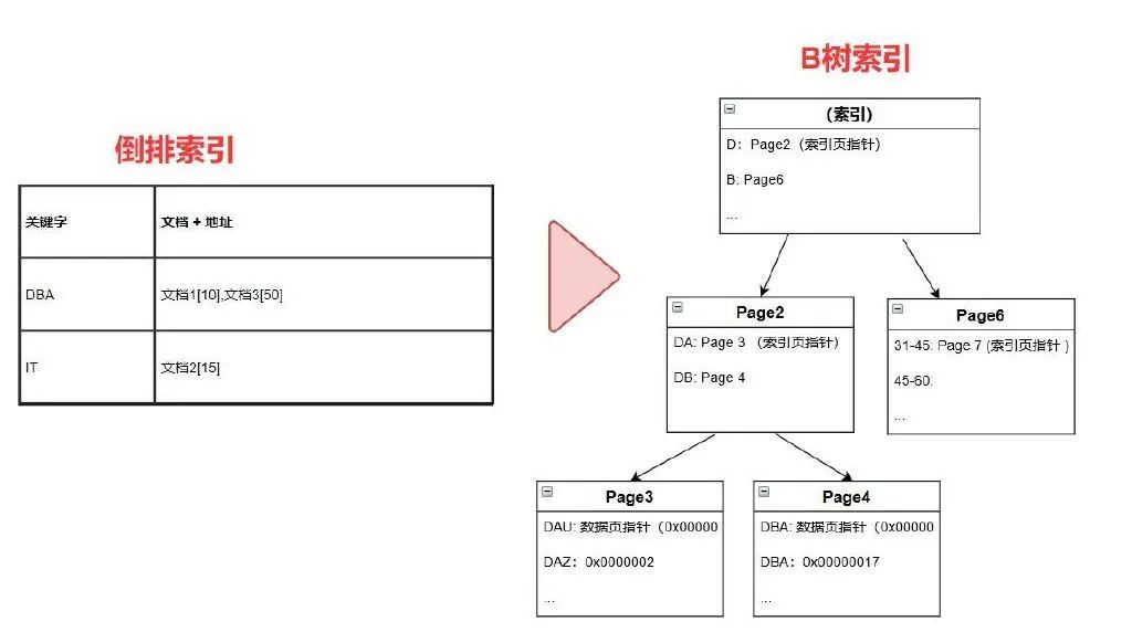 所以B树索引,与倒排索引(inverted index)有着同样怪异的名字,叫做顺排索引(forward index),字面意思,按照大小从前往后排。就像图中所示的DBA关键字一样,如果有2条,就排上两条,如果有20条呢,同样也排上20条,只不过每个指向数据页的指针,或许有些许不同罢了。