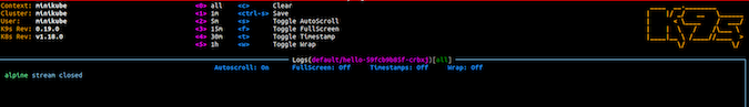 K9s is a CLI to view and manage your Kubernetes clusters.