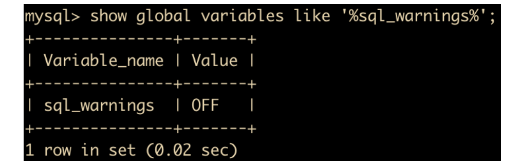 set global sql_warnings=ON; -- global不能省略/** 或者 **/