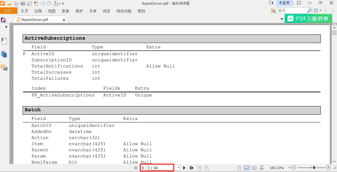 足足有10页之多,我们点击左上方的【打印】,将表结构打印成PDF文件,就可以得到一份非常完成的数据字典了,如下图: