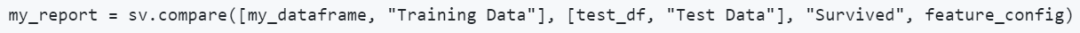 sweetviz使用的原理是,使用一行代码,生成一个数据报告的对象(其中,my_dataframe是pandas中的DataFrame,一种表格型数据结构):