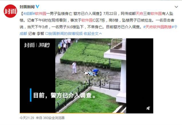 据目击者称,当天 15 时许,一男子从六楼坠下,不幸身亡。从画面可以看出,男子被发现时已经丝毫没有动静,躺在地上一动不动,已经失去了生命体征。