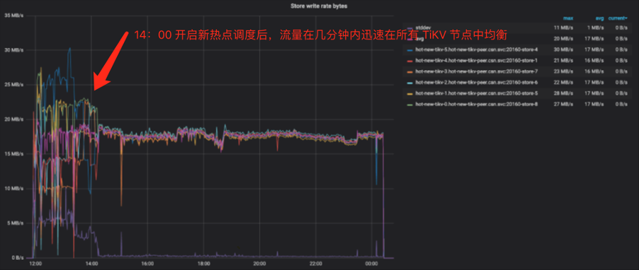 开启新热点调度后,测试流量可以快速得到均衡