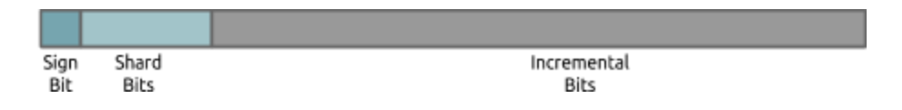 SignBit - 符号位,有符号时占用,长度为 1。 ShardBits - 生成随机数对 ID 值域打散,由属性 auto_random(5) 指定,默认为 5。 increment_bits - 自增位,用于保证 ID 的唯一性以及单语句 Insert 时,分配的连续性。