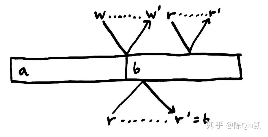 ,但反过来想想,这同样行不通:当读请求比写操作先到达时,进程会在当前值为b