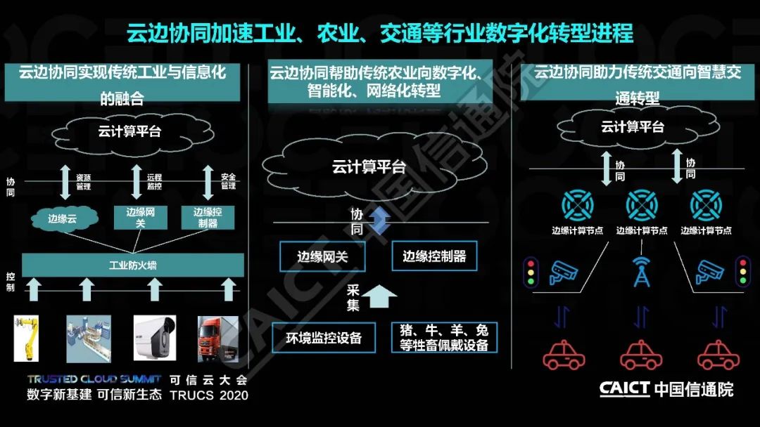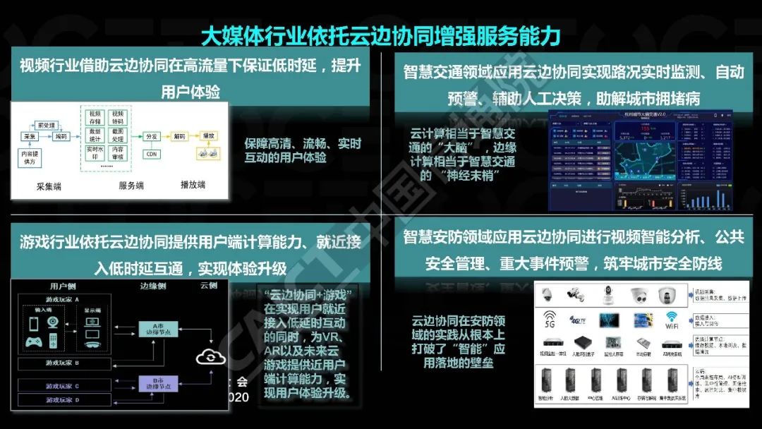 尽管电信服务商和互联网服务商在云边协同上的布局路径有所不同,但是最终都将为行业带来算力红利。从具体的行业上看,大媒体行业首先受益于分布式云的发展,而在工业、交通、农业三大行业,云边协同也将发挥重要作用。比如:云边协同将实现传统工业与信息化的融合,云边协同将帮助传统农业向数字化、智能化、网络化转型,云边协同助力传统交通向智慧交通转型等。“云边协同,促使云计算为各行业各的赋能更加具备普惠性,将算力延伸到边缘侧。”栗蔚补充道。