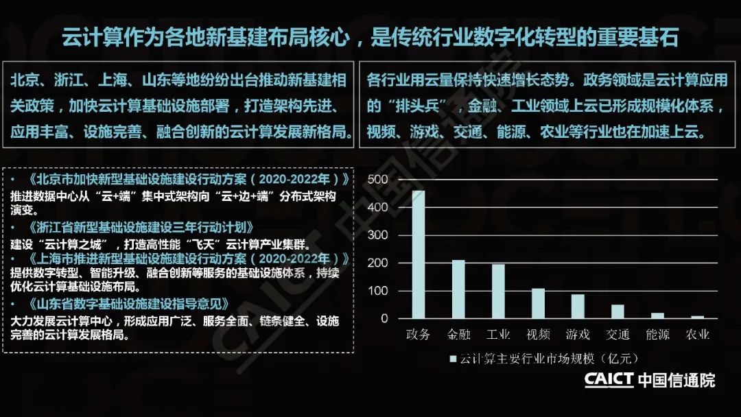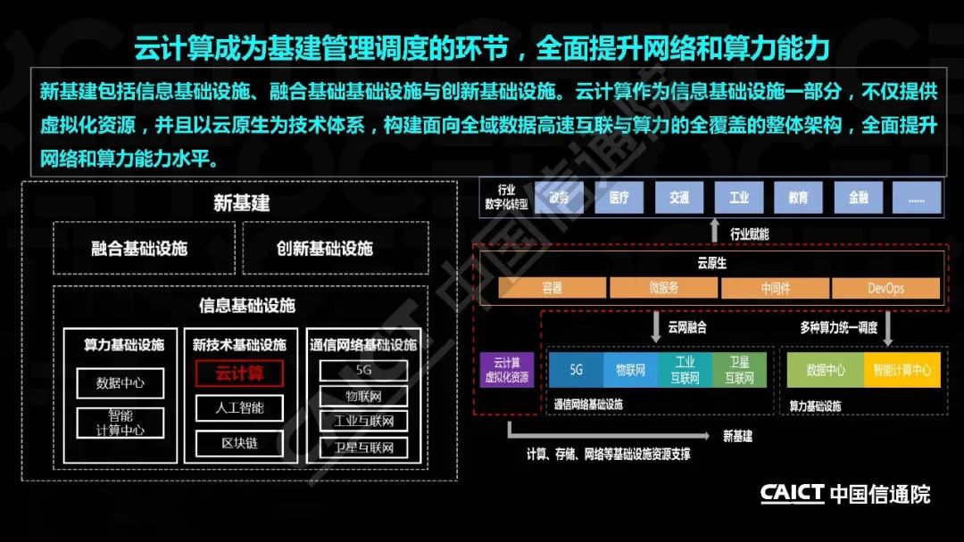 六、云计算将进一步发挥其操作系统属性,深度整合算力、网络与其他新技术,推动新基建赋能产业结构不断升级。