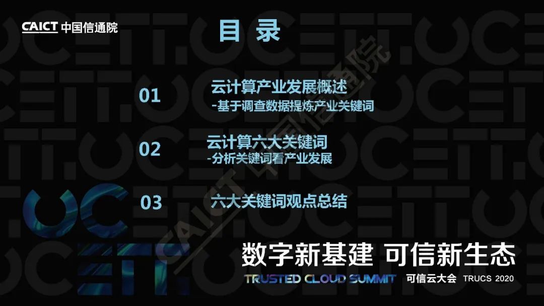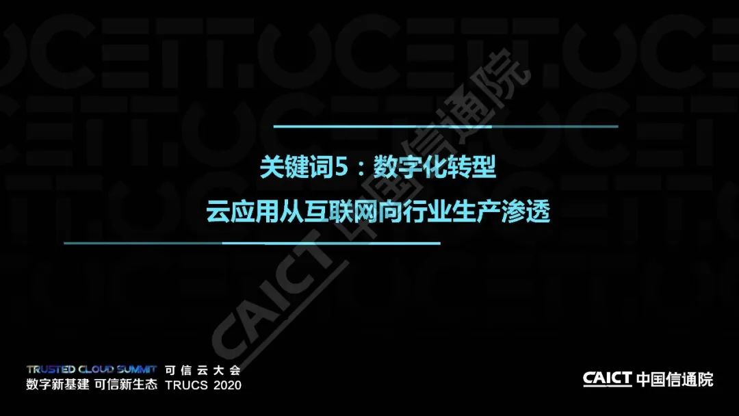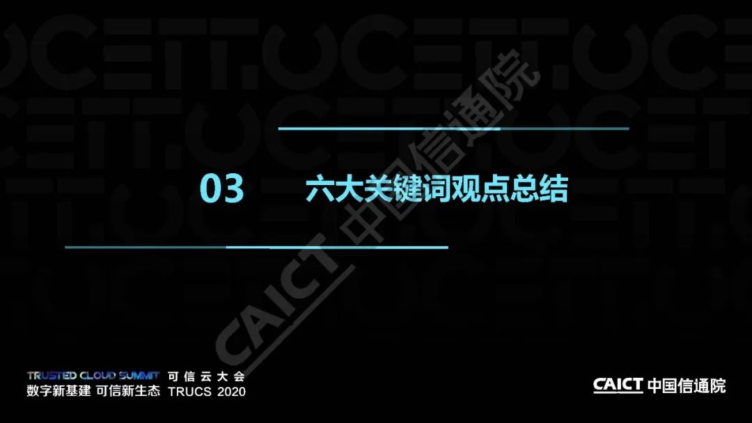 中国信通院云计算与大数据研究所副所长栗蔚在会上正式发布并解读白皮书,披露了中国信通院基于对云计算市场的长期观察和研究,总结出的2020年云计算发展六大关键词,以及六大关键词背后的重要趋势。